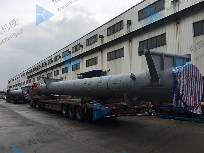 烯烃高压火炬筒体待发货,由无锡市裕昌化工机械有限公司按图纸生产制造。